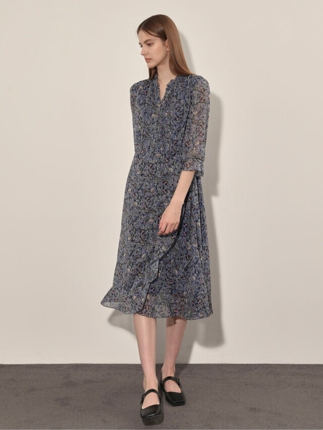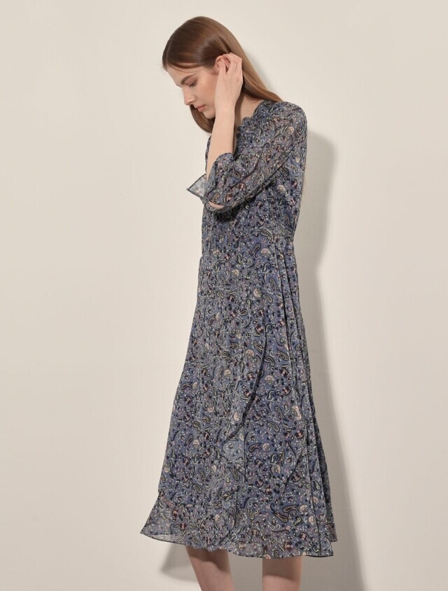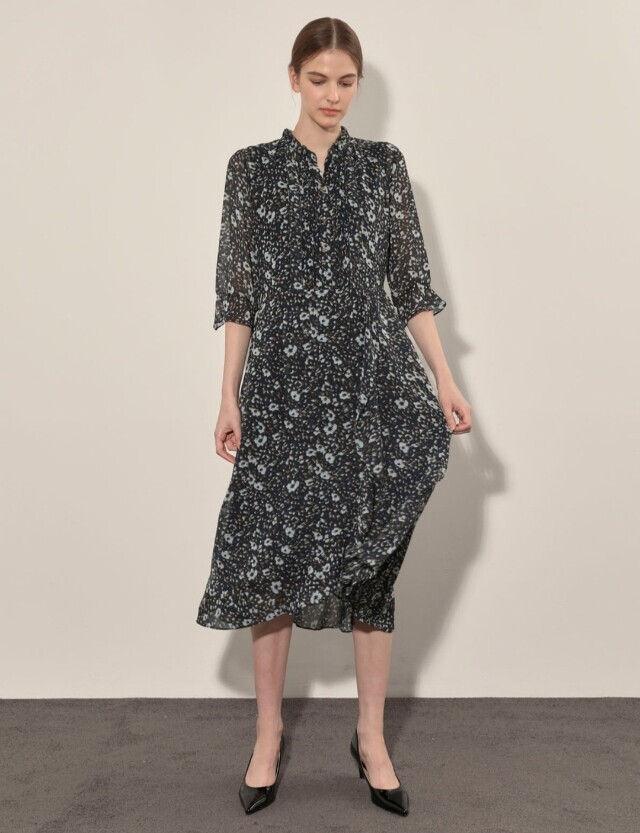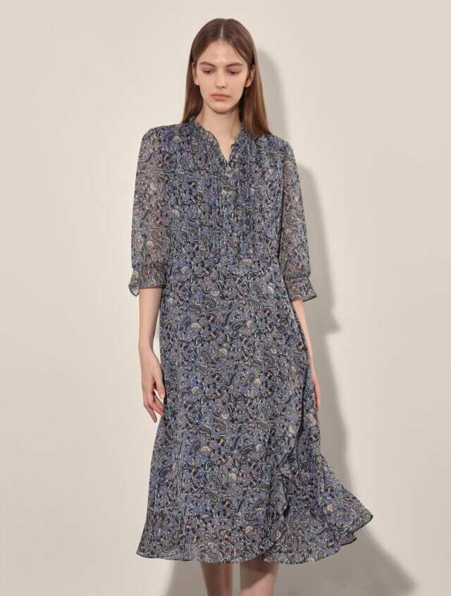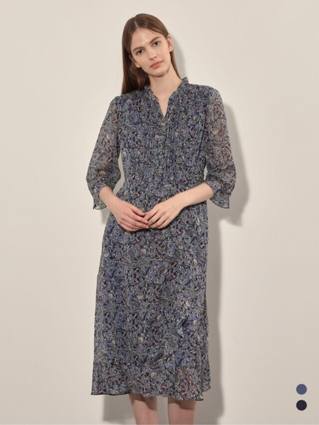뒤 허리부분 밴딩처리 된 프린트 원피스 입니다