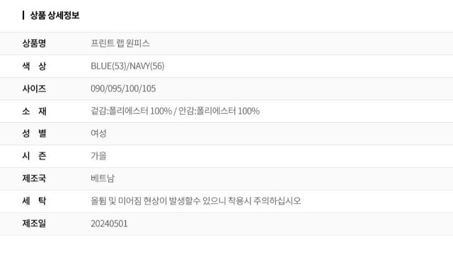 • 처음 배송된 상품상태와 다를 경우(세탁/착용 후 외출하신 경우) 반품이 불가합니다.
