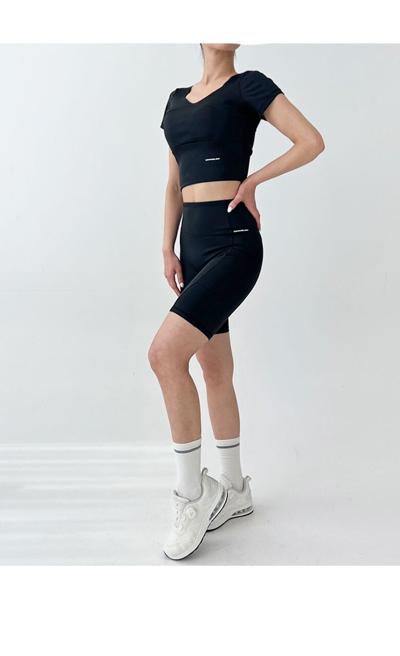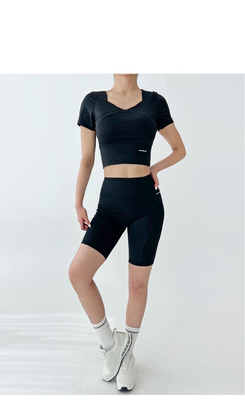 골피아 스포츠 텐션 크롭 반팔 바이커 쇼츠 5부 레깅스set1