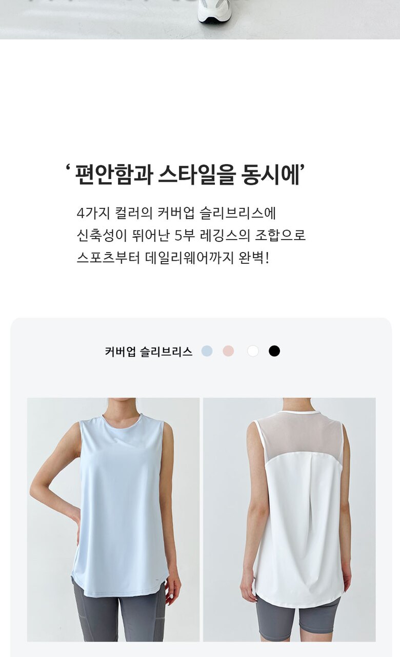 골피아 스포츠 메쉬 커버업 슬리브리스 바이커 쇼츠 5부 레깅스set2