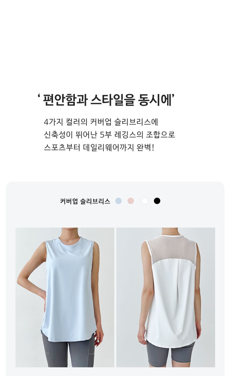 골피아 스포츠 메쉬 커버업 슬리브리스 바이커 쇼츠 5부 레깅스set1