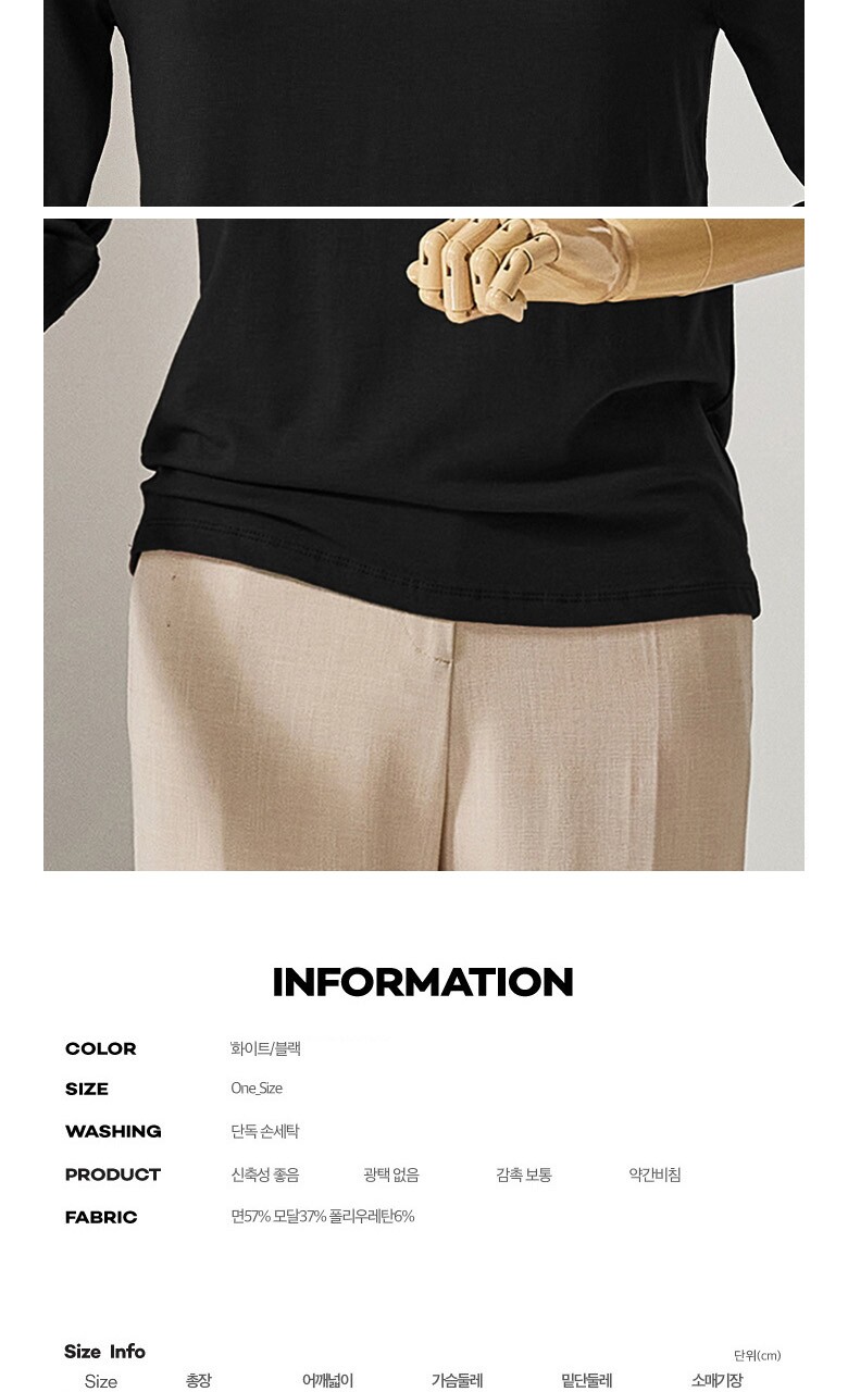 1. 제품 소재 (섬유의 조성 또는 혼용률을 백분율로 표시, 기능성인 경우 성적서 또는 허가서) | 면57% 모달37% 폴리우레탄6% |