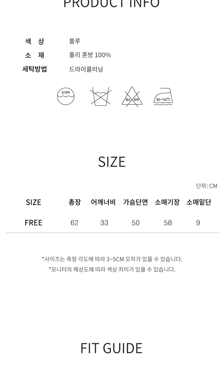 • 처음 배송된 상품상태와 다를 경우(세탁/착용 후 외출하신 경우) 반품이 불가합니다.