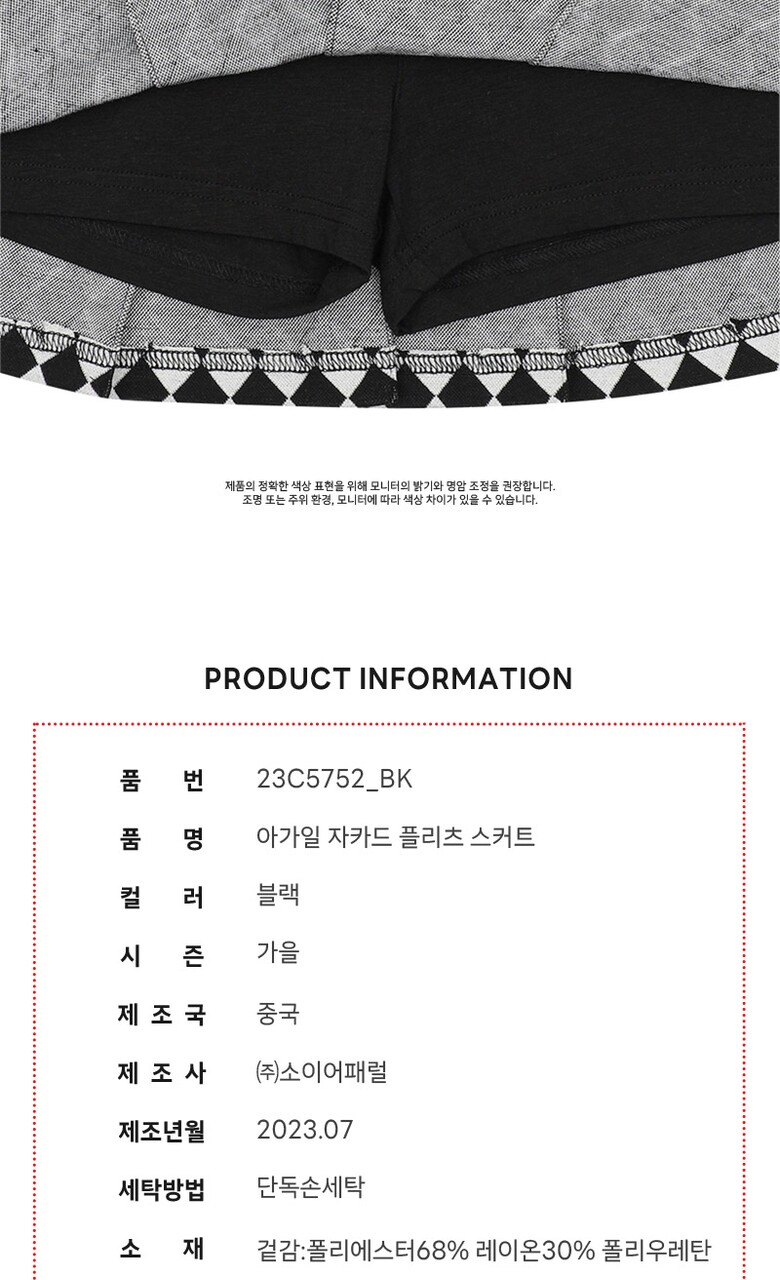 여아 아가일 자카드 플리츠 스커트 23C5752_BK