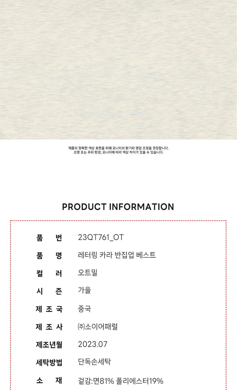여아 레터링 카라 반집업 베스트 23QT761_OT