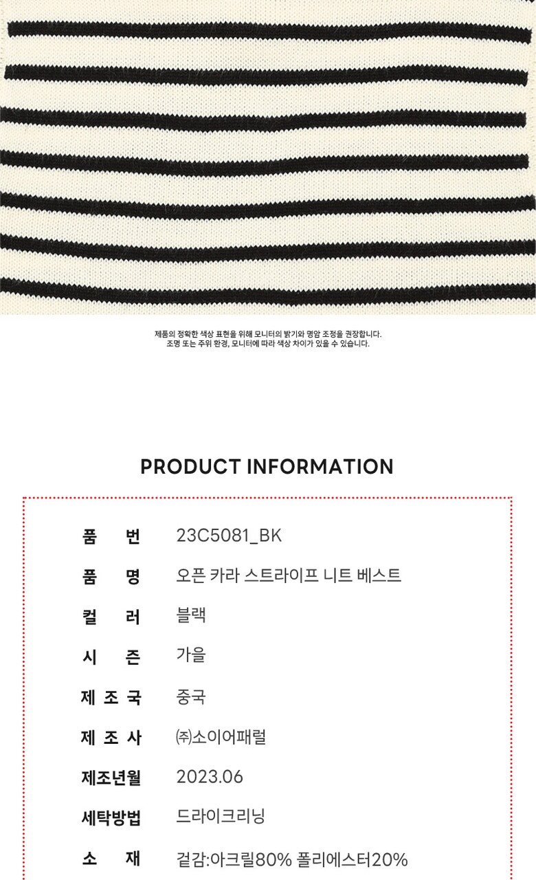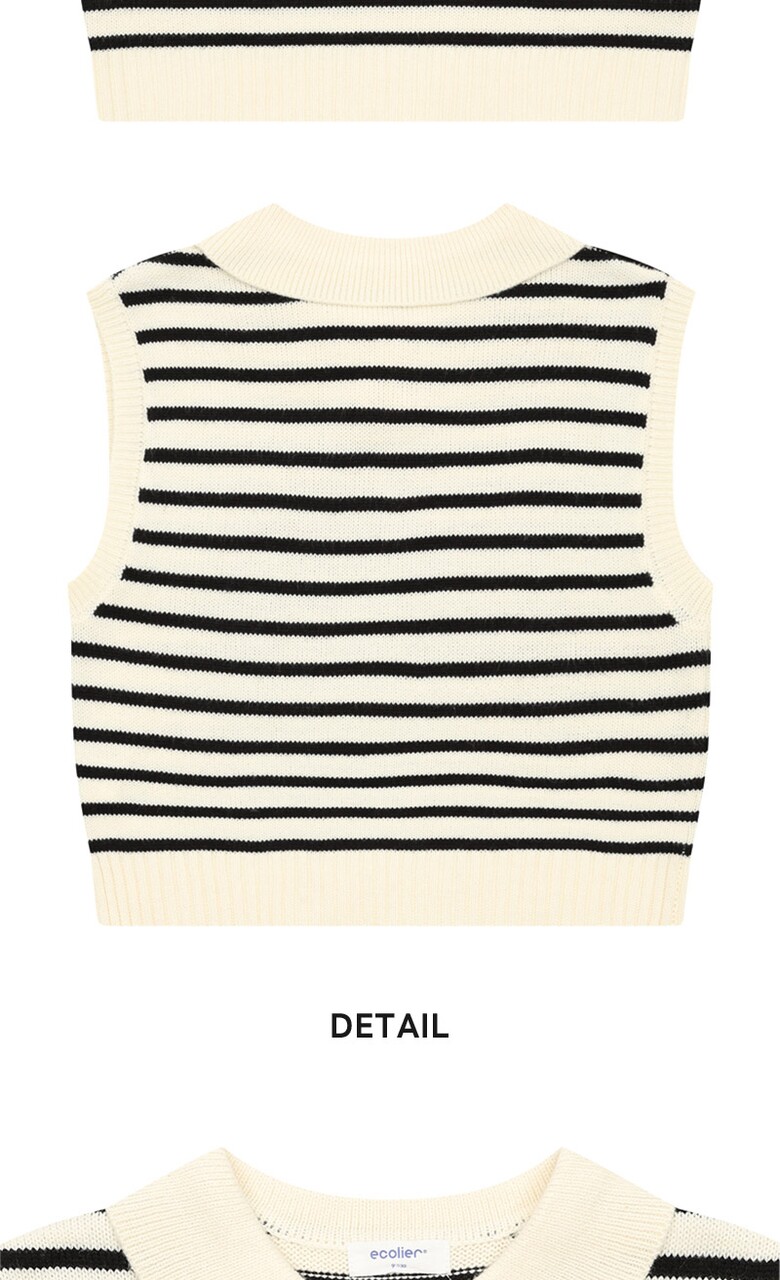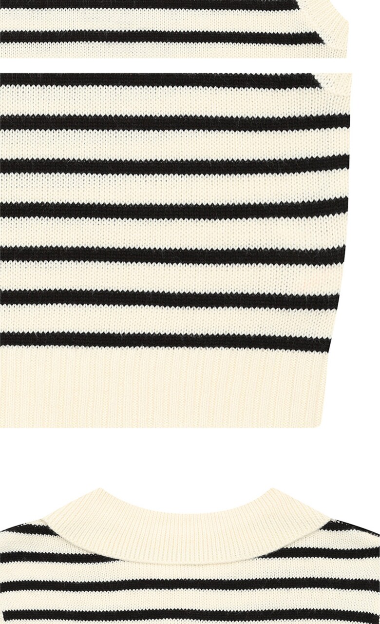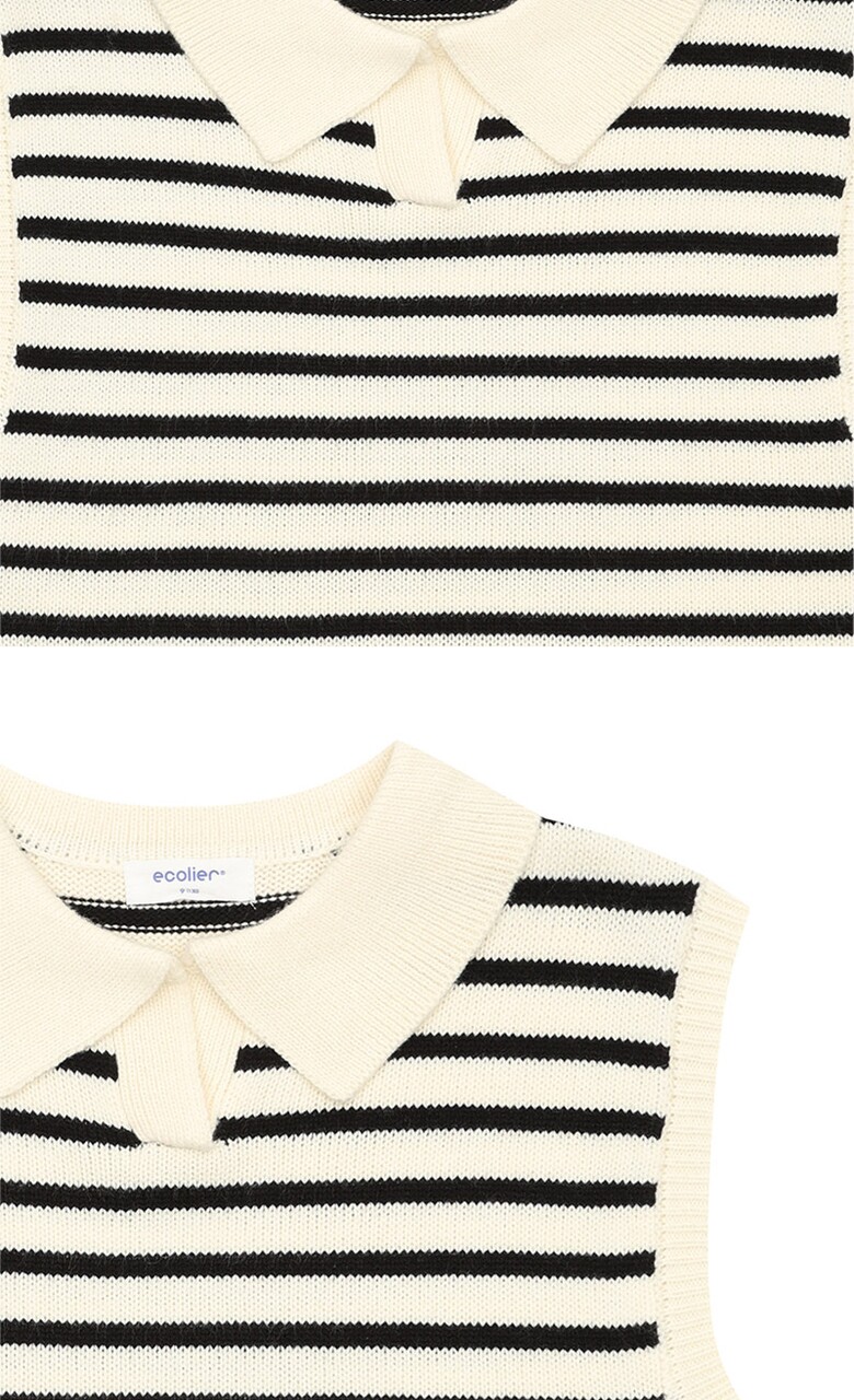 여아 오픈 카라 스트라이프 니트 베스트 23C5081_BK