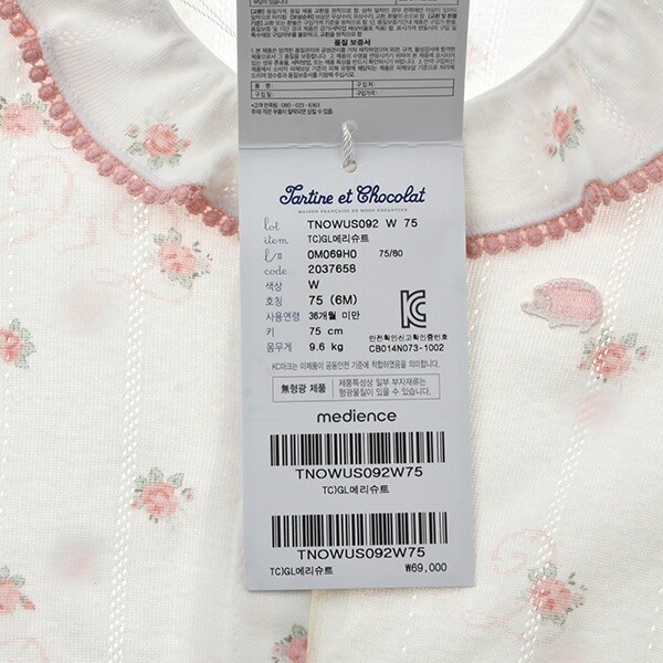 세탁방법 및 취급시 주의사항 : 삶지 마십시오. 기계건조 금지. 주의! 작은 부품이 탈락되면 삼킬 수 있음.