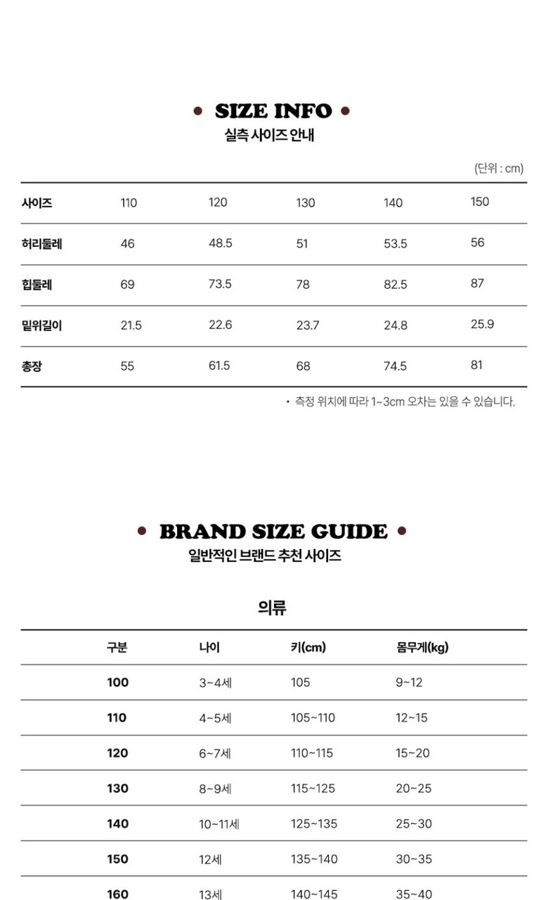 3. 치수 | 110,120,130,140,150 |