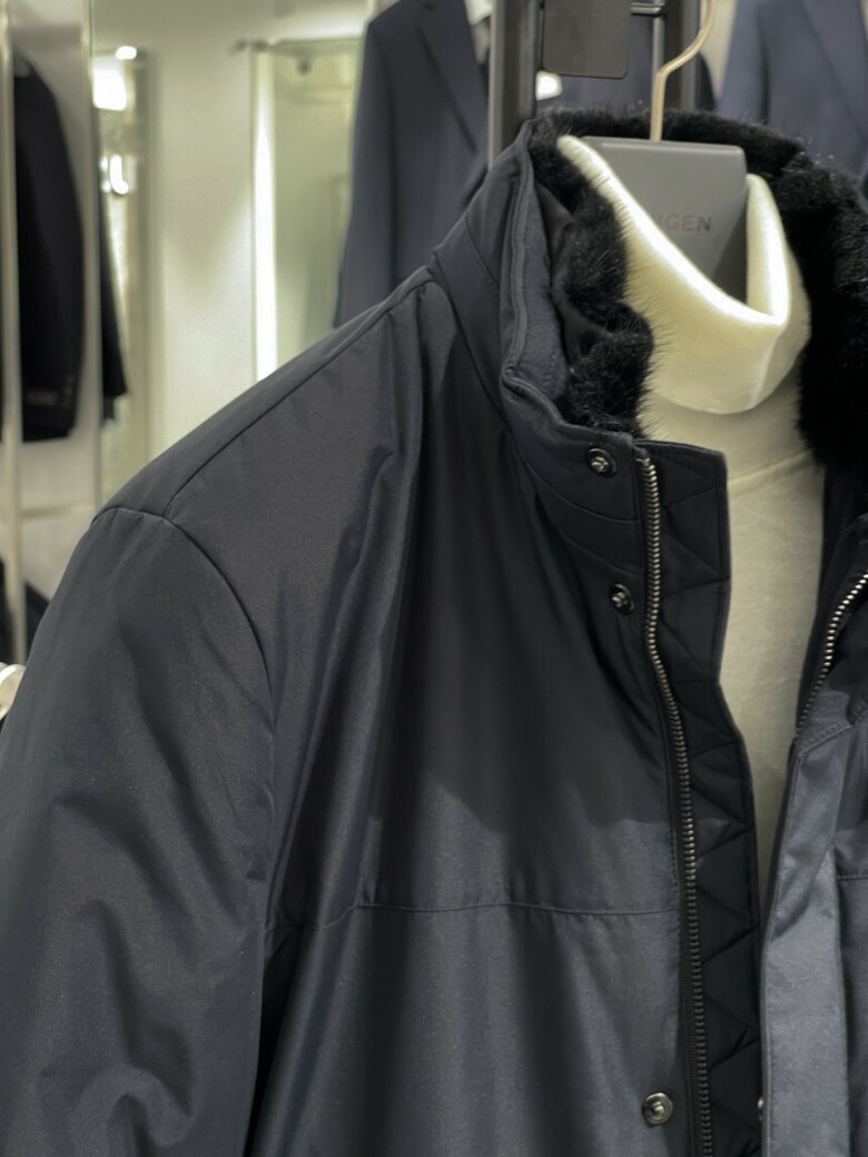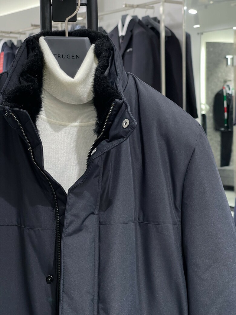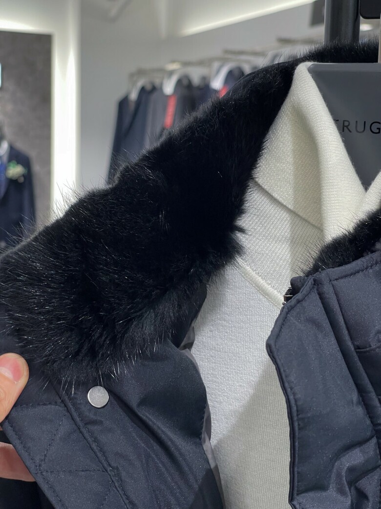 - 넥라인 안감에 천연모피(머스크랫) 퍼를 적용/ 탈부착 가능하여 고급스럽고 착용 가능