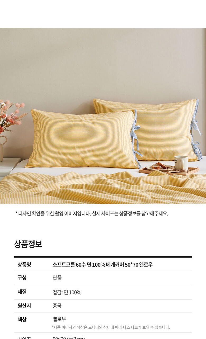 모던하우스 소프트코튼 60수 면 100% 베개커버 50x70 옐로우 CV0325159