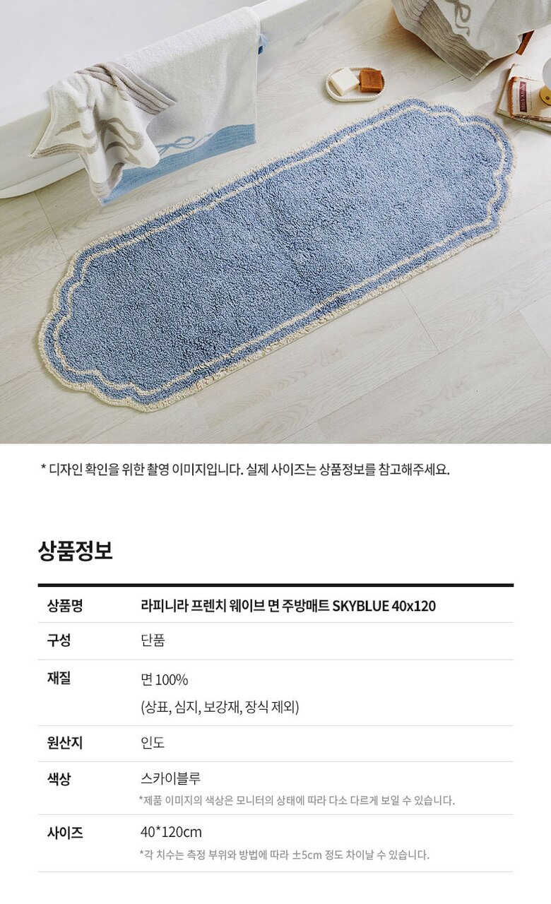 모던하우스 라피니라 프렌치 웨이브 면 주방매트 SKYBLUE 40x120 BG9925010