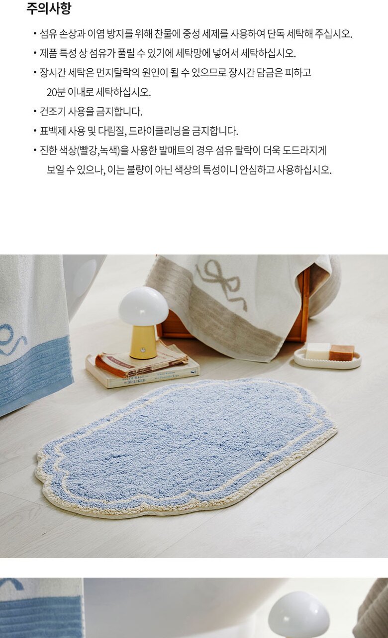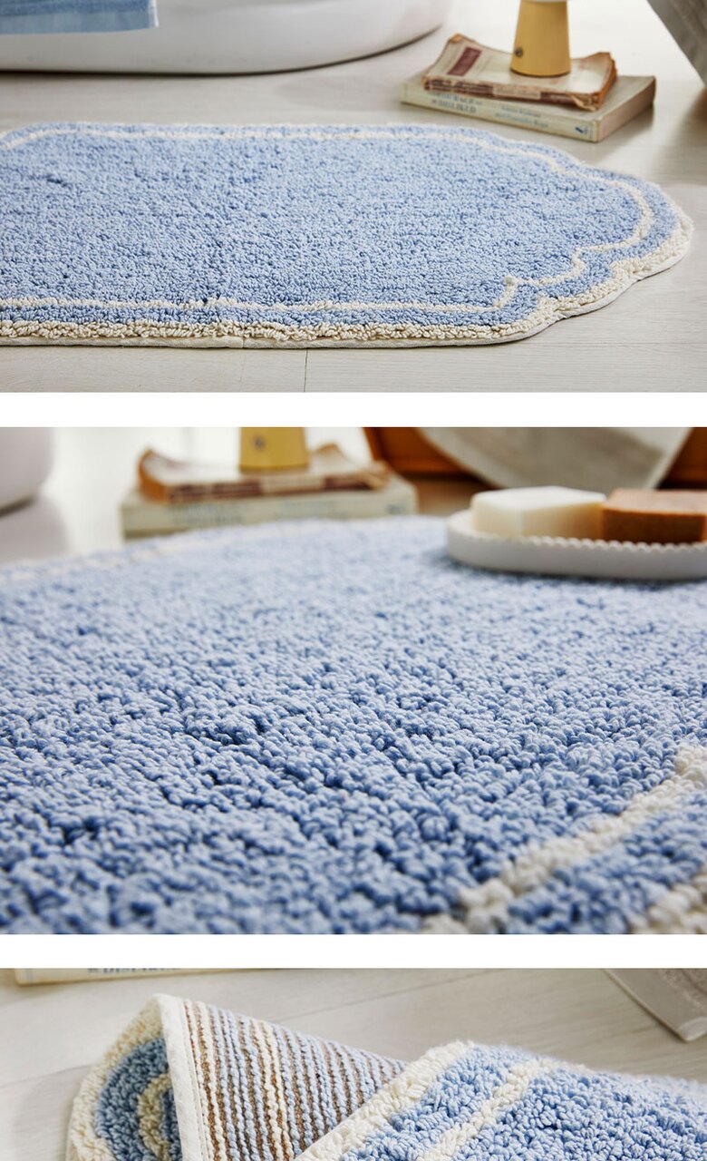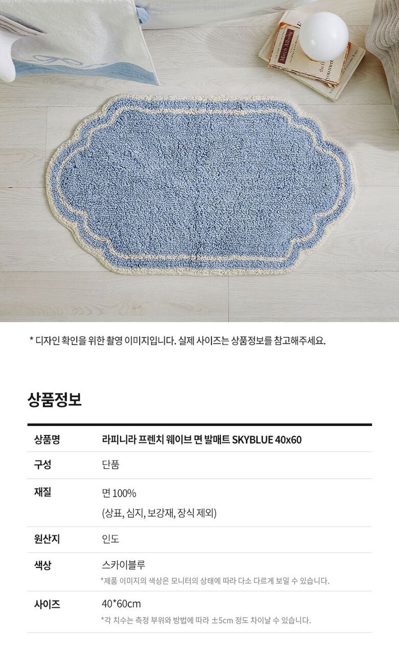 모던하우스 라피니라 프렌치 웨이브 면 발매트 SKYBLUE 40x60 BG9925008