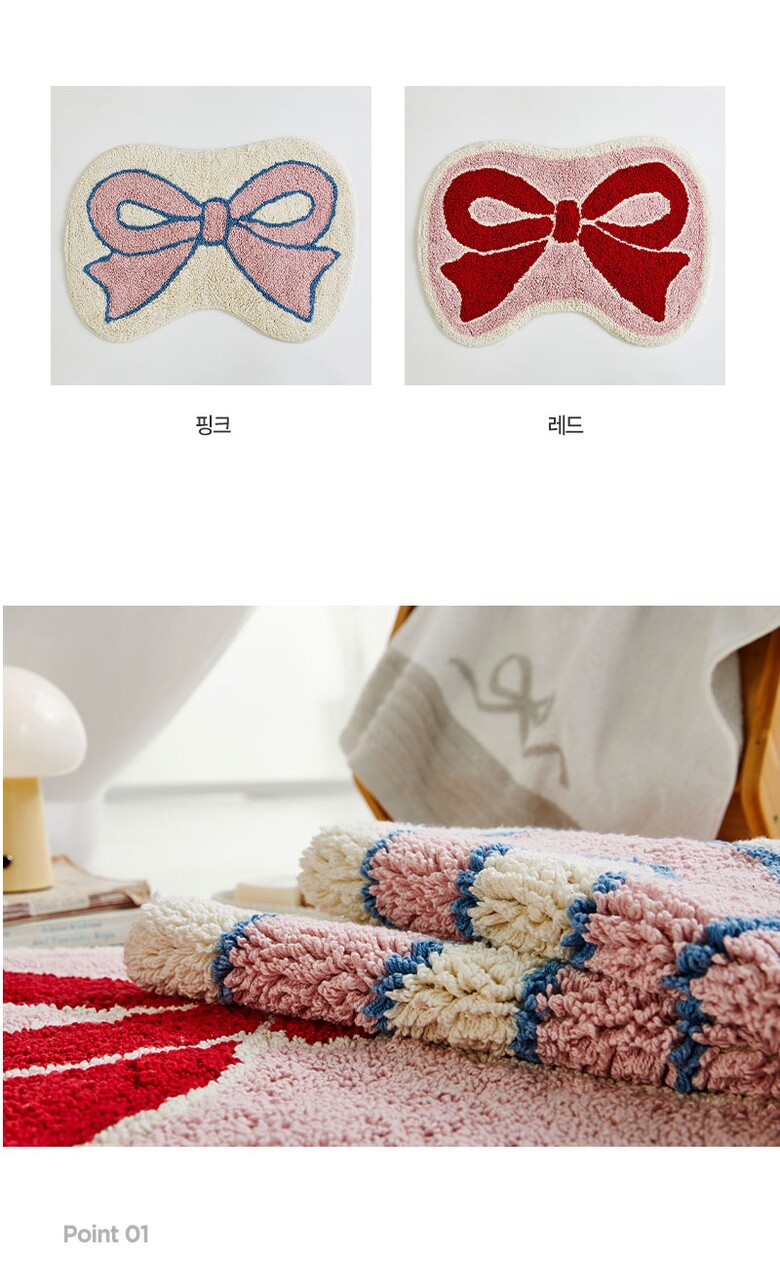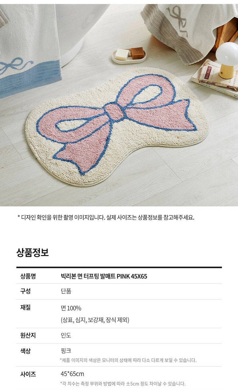 모던하우스 빅리본 면 터프팅 발매트 PINK 45X65 BG2025037
