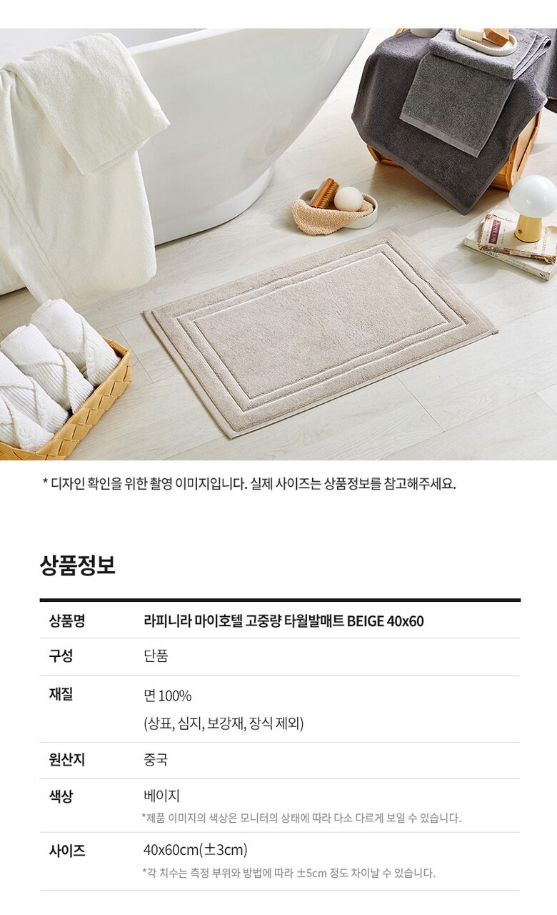 모던하우스 라피니라 마이호텔 고중량 타월발매트 BEIGE 40x60 BG9925002