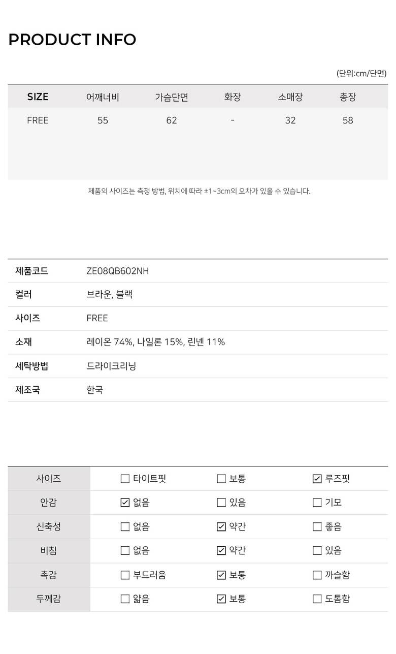 1. 제품 소재 (섬유의 조성 또는 혼용률을 백분율로 표시, 기능성인 경우 성적서 또는 허가서) 레이온74%,나일론15%,린넨11%