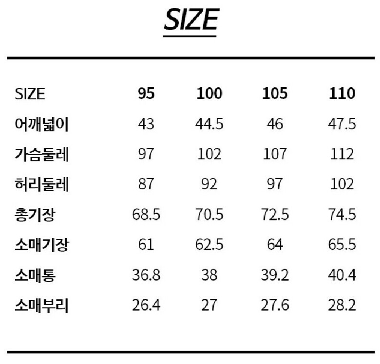 상의사이즈 : 95,100,105,110