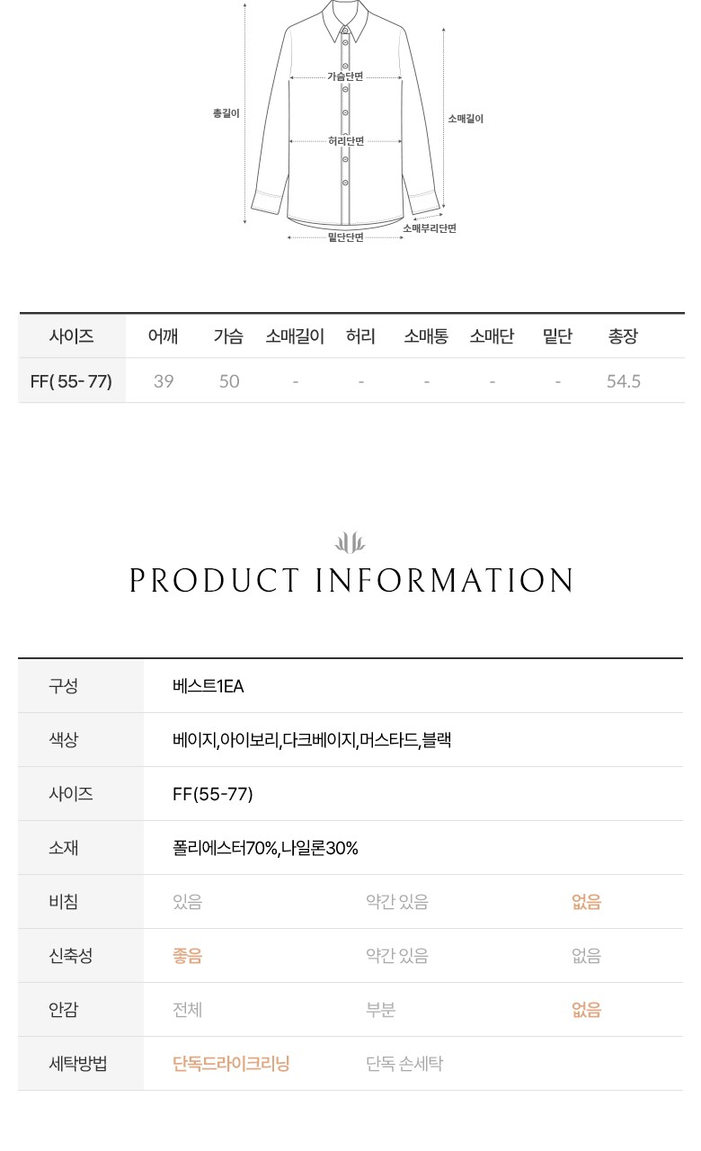 • 처음 배송된 상품상태와 다를 경우(세탁/착용 후 외출하신 경우) 반품이 불가합니다.