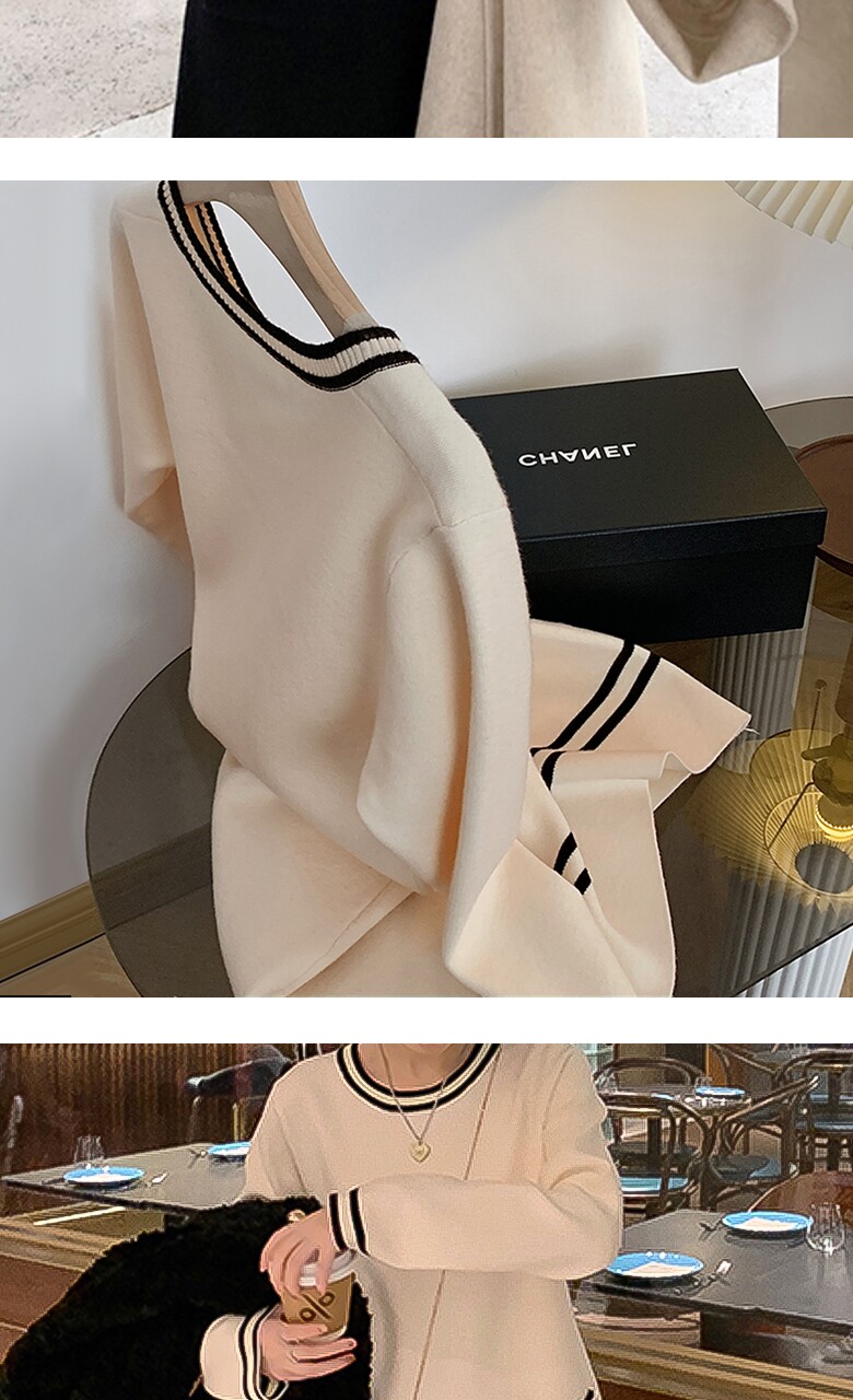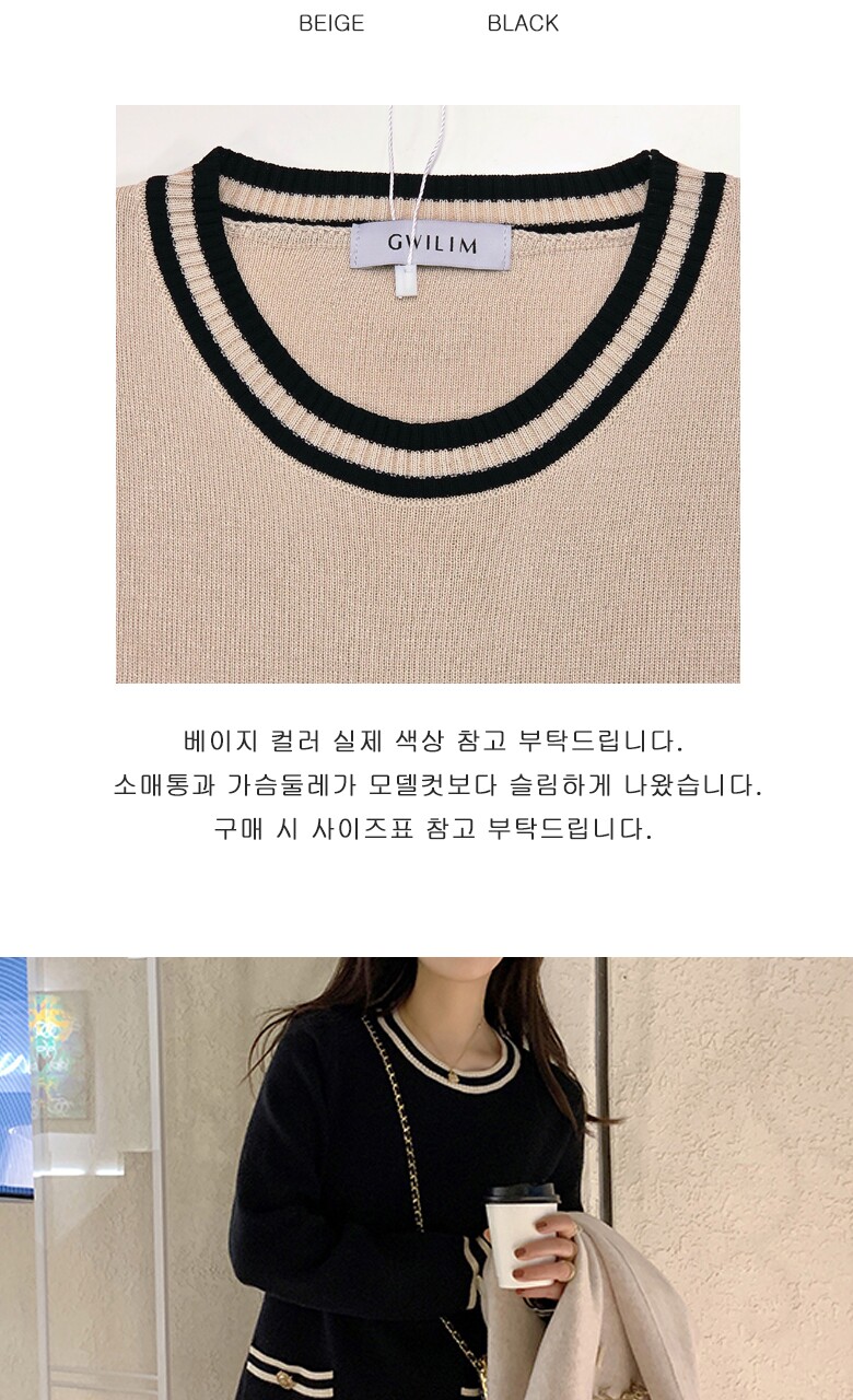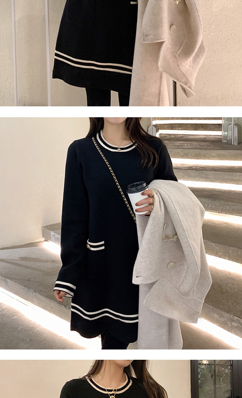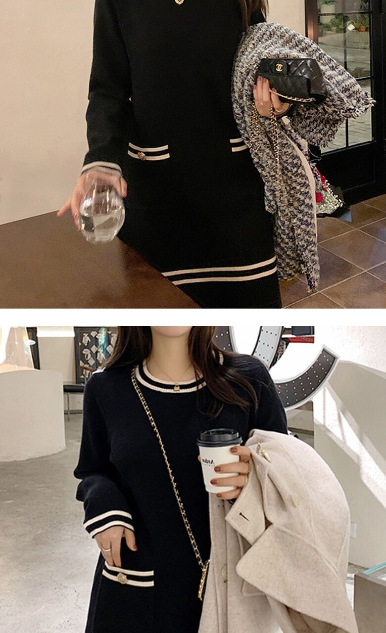 (귈림) 투라인 배색 포켓 라운드넥 니트 원피스(G5FOP002P)