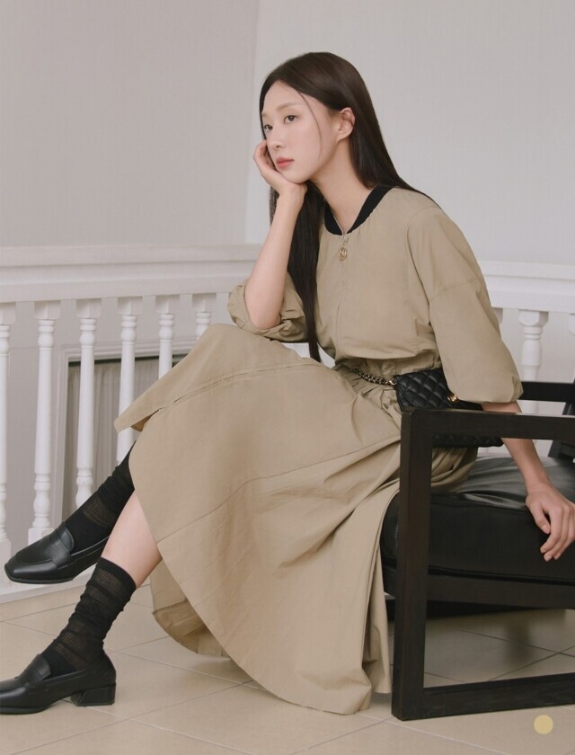 원피스 입니다 넥라인에 니트배색으로 한층 캐주얼한