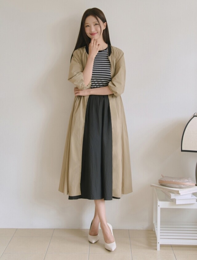 스커트부분 플리츠 배색이 돋보이는 아우터형
