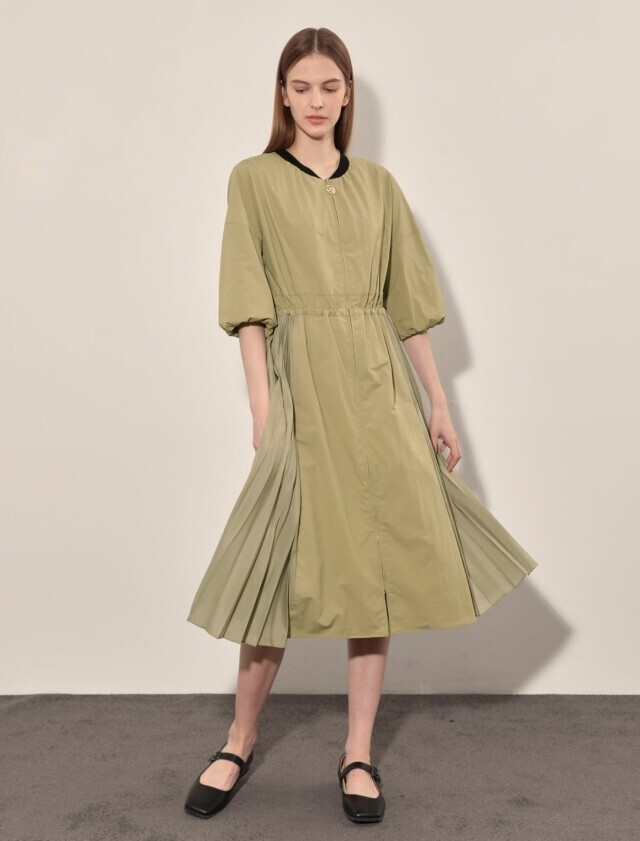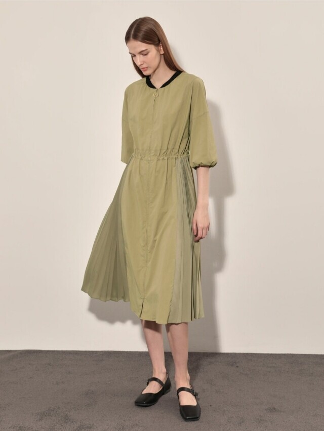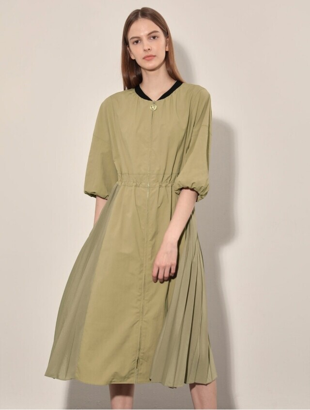 [올리비아로렌]플리츠 배색 지퍼원피스VOCOA4F7351