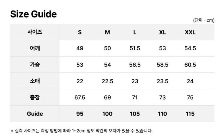 사이즈 : 95(S),100(M),105(L),110(XL),115(XXL)