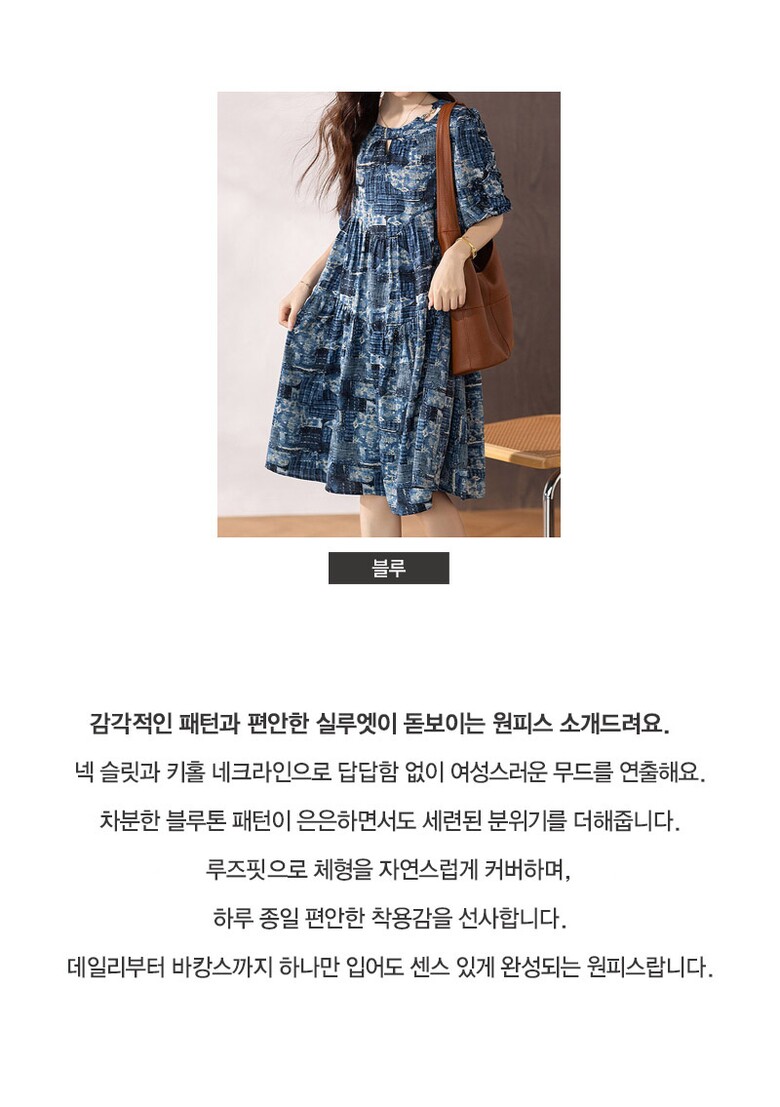 [~88까지]르젯 넥 슬릿 포인트 패턴 원피스