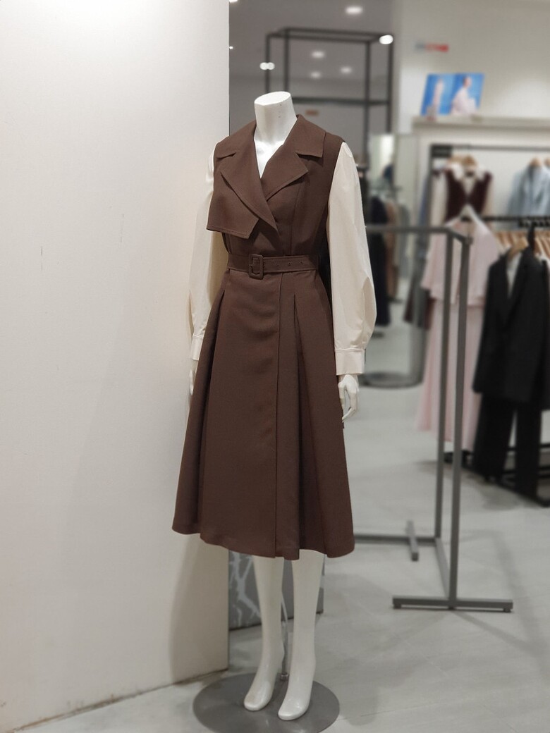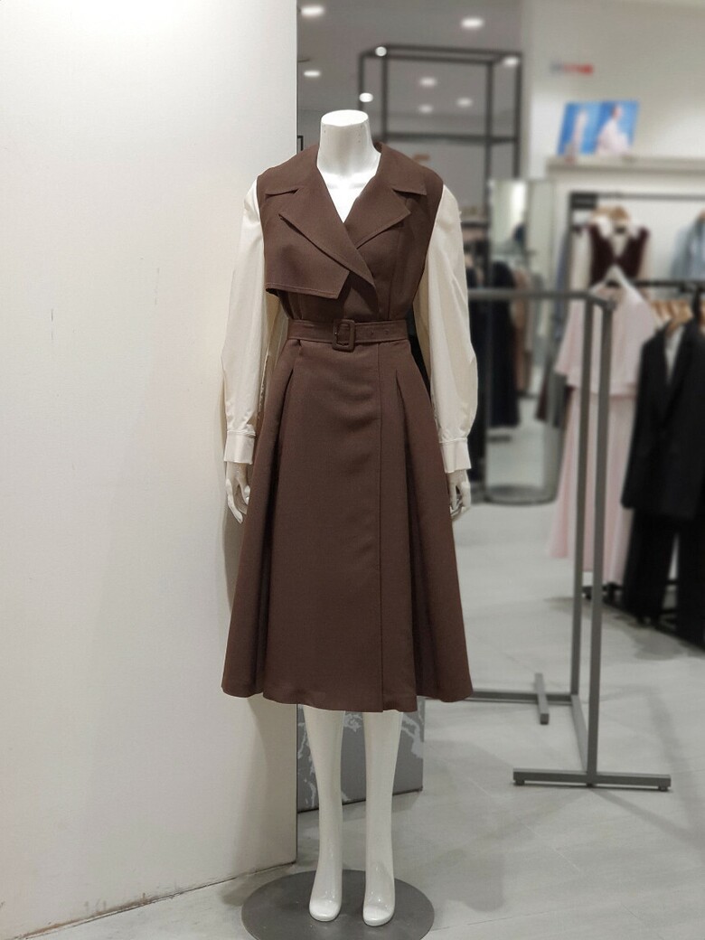 트렌치코트 디자인이 포인트가 되는 원피스입니다.