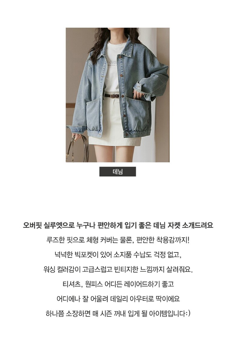 [~77까지]에프 오버핏 버튼 포인트 카라 데님 자켓