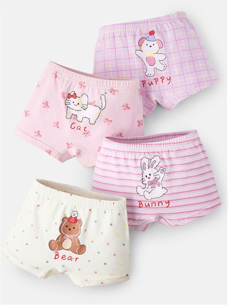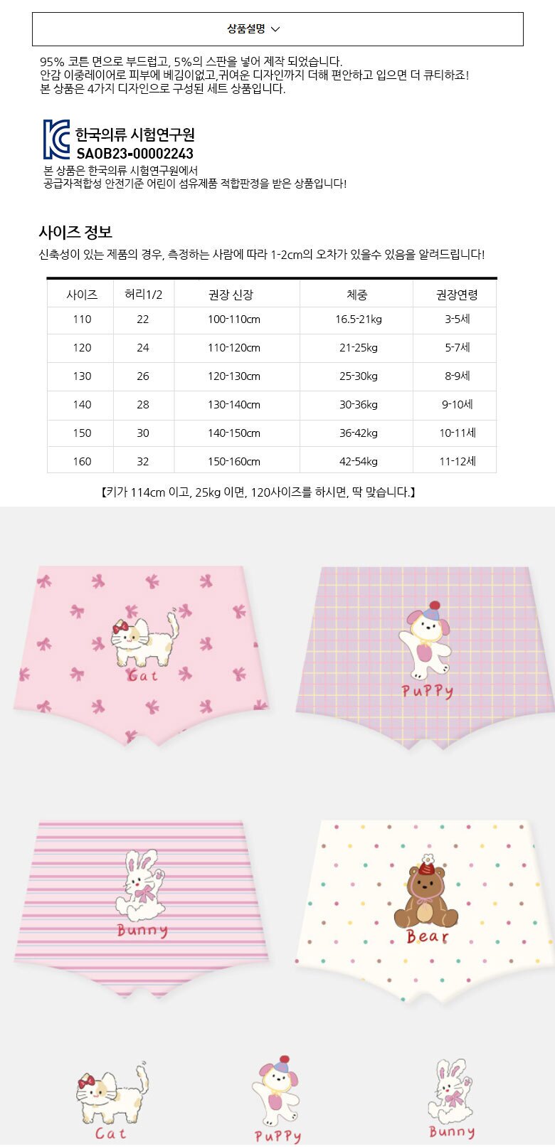 아기동물파티 여아 사각팬티 4매+더스트백(N186)