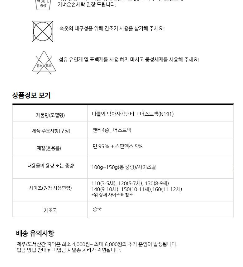 3. 크기, 중량 | 상세페이지 참조 |