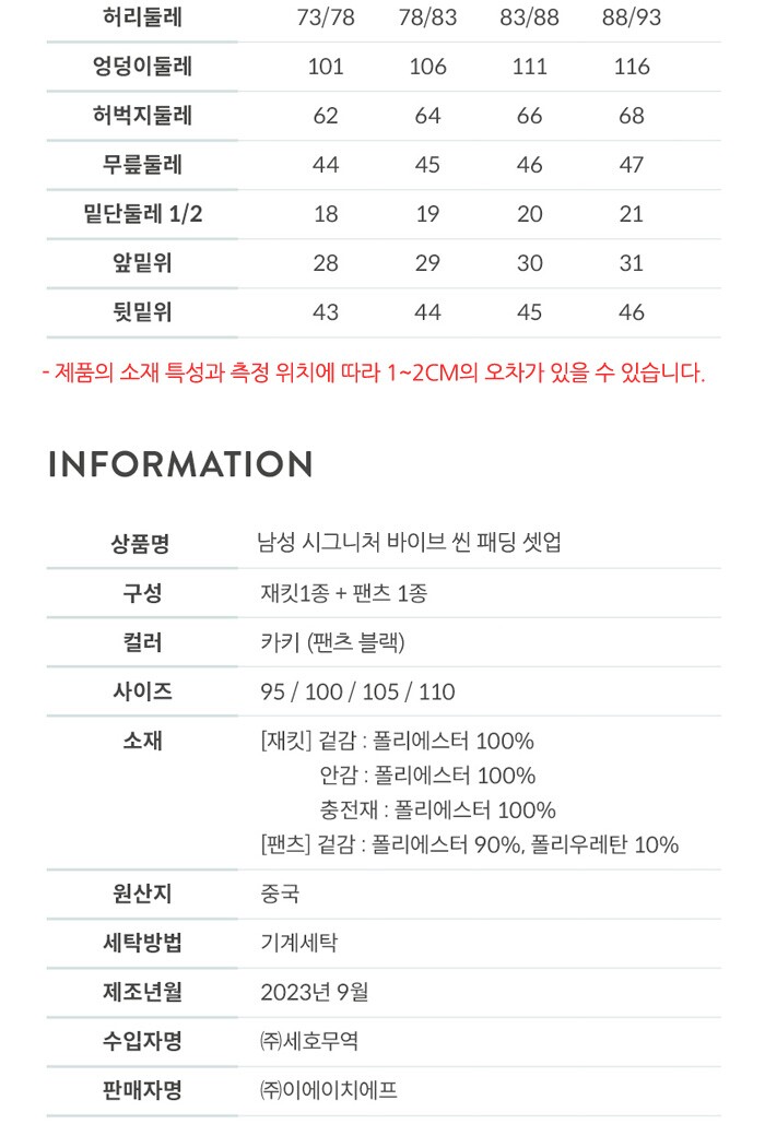 6. 세탁방법 및 취급시 주의사항 상세페이지참조