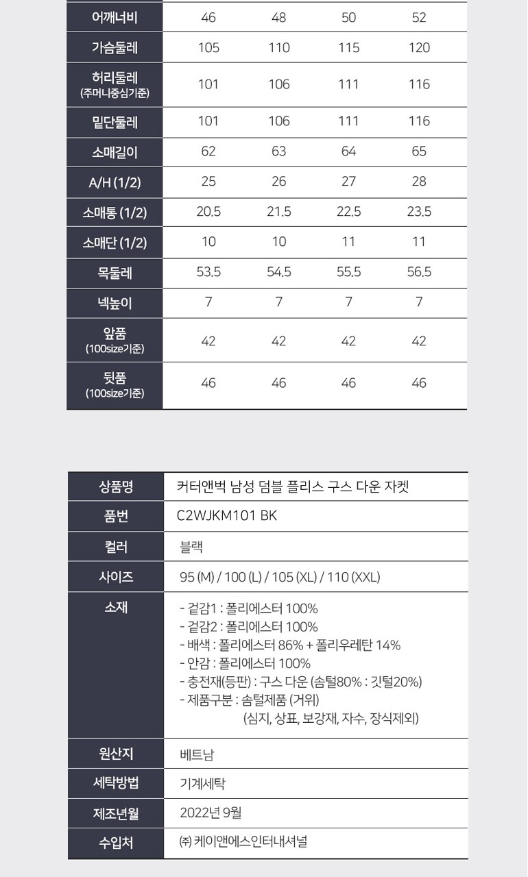 커터앤벅 남성 덤블 플리스 구스다운 자켓_BK