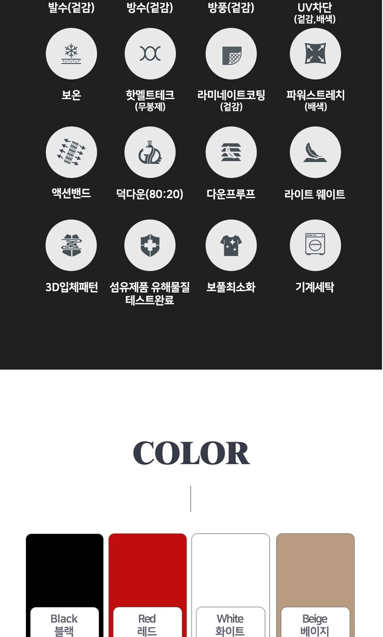 1. 제품 소재 (섬유의 조성 또는 혼용률을 백분율로 표시, 기능성인 경우 성적서 또는 허가서) 상세페이지참조
