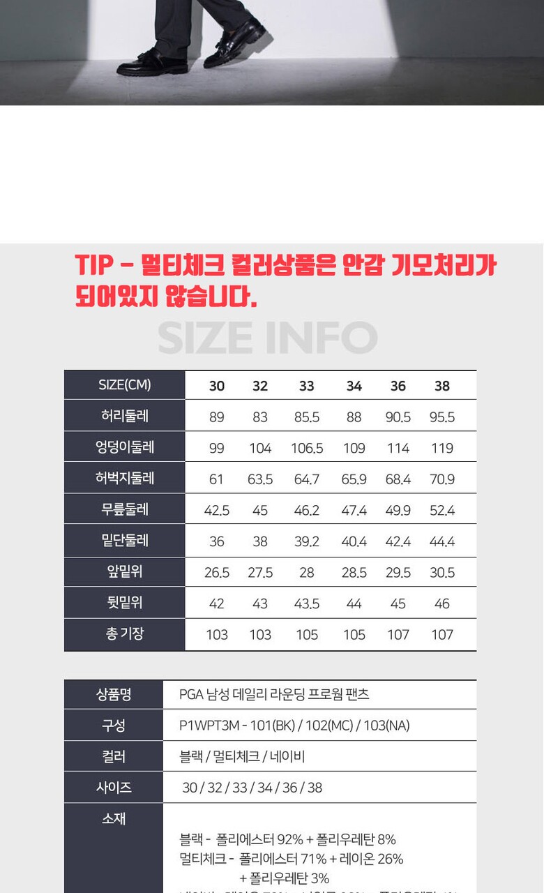 3. 치수 30,32,33,34,36,38