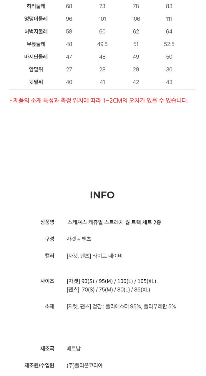 여성 캐주얼 스트레치 웜 트랙셋업 2종(라이트네이비)