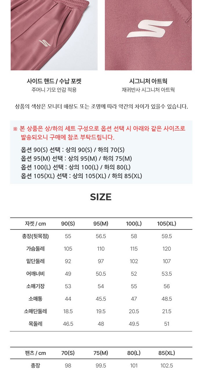 여성 캐주얼 스트레치 웜 트랙셋업 2종(다크핑크)