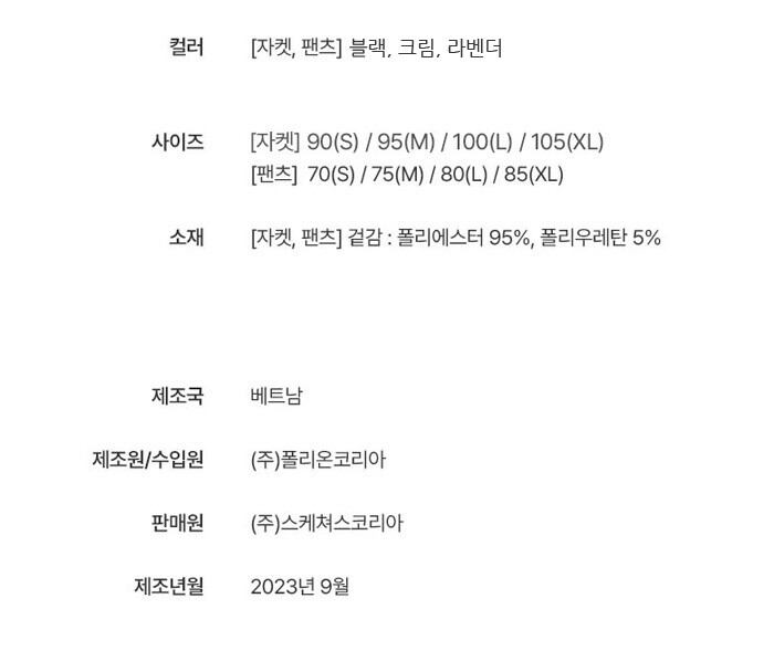 1. 제품 소재 (섬유의 조성 또는 혼용률을 백분율로 표시, 기능성인 경우 성적서 또는 허가서) | 상세페이지참조 |