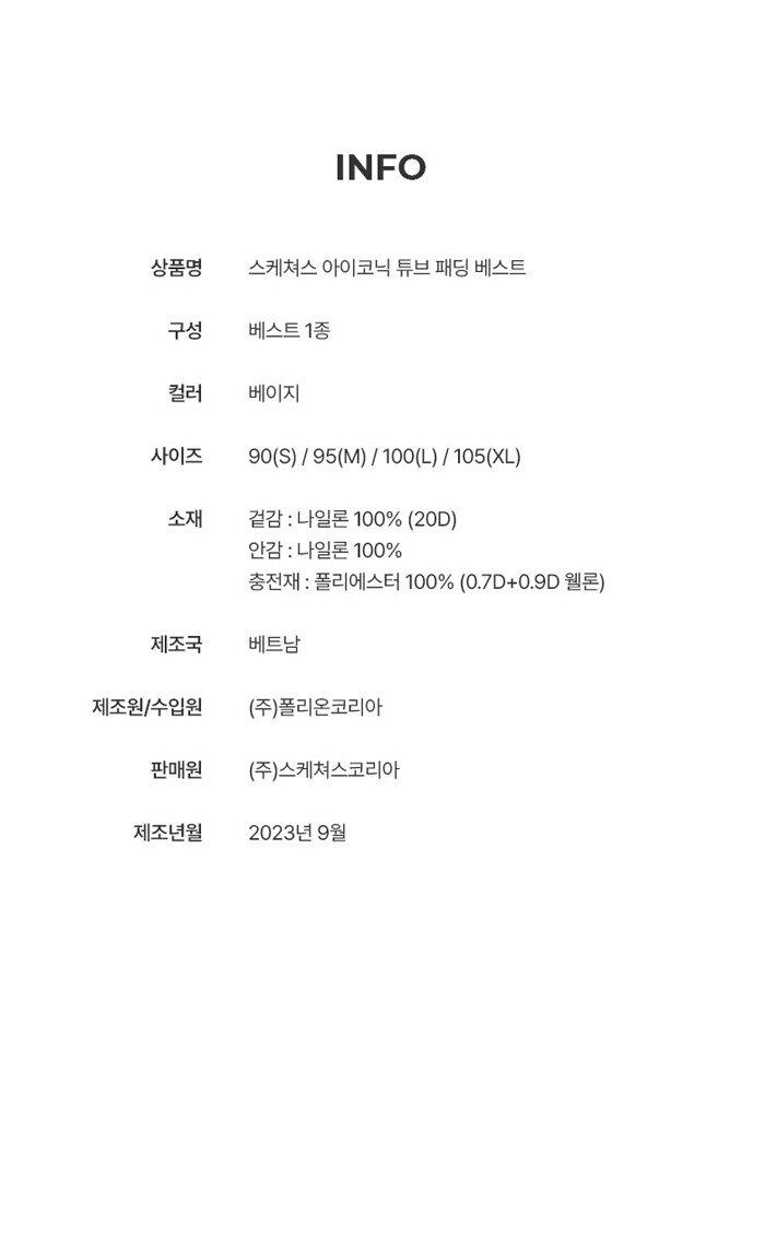 1. 제품 소재 (섬유의 조성 또는 혼용률을 백분율로 표시, 기능성인 경우 성적서 또는 허가서) | 상세페이지참조 |