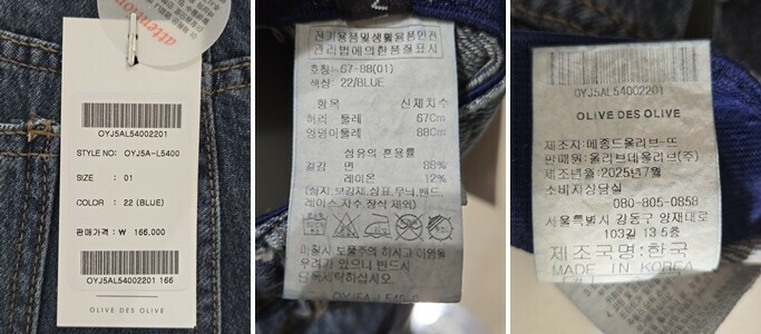 [올리브데올리브] 와이드 히든밴딩 데님팬츠 YJ5AL540
