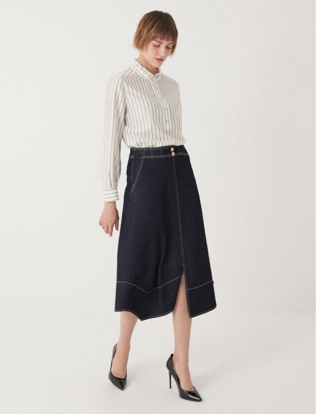 [올리비아로렌]엣지스트라이프 블라우스VOCNL3F8356