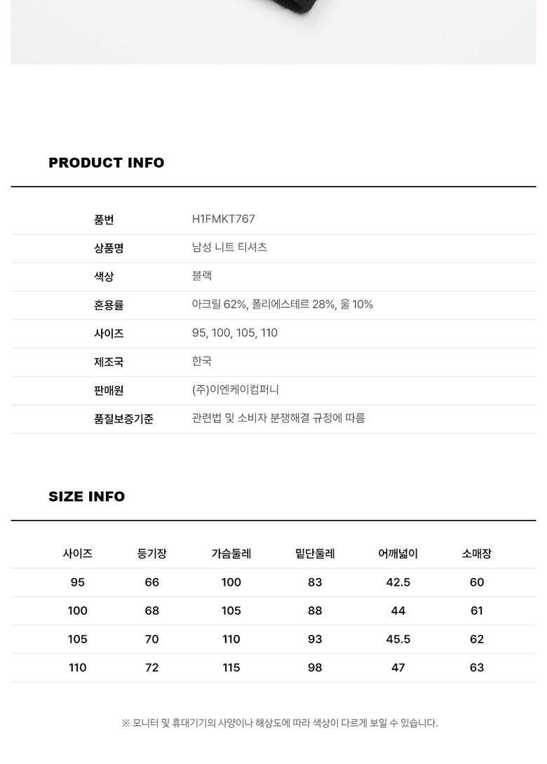 1. 제품 소재 (섬유의 조성 또는 혼용률을 백분율로 표시, 기능성인 경우 성적서 또는 허가서) | 상품 이미지 참조 |