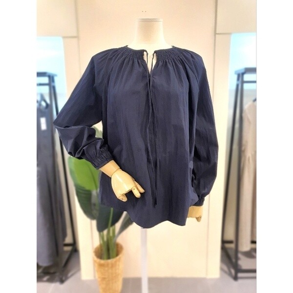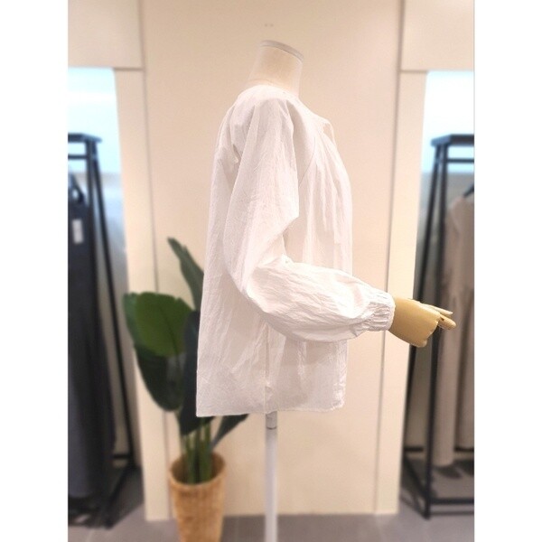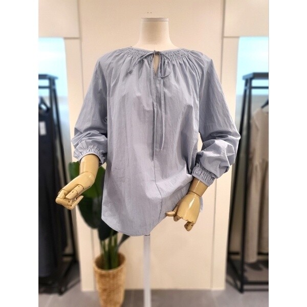 바스락 원단 라운드넥 긴팔 블라우스입니다.