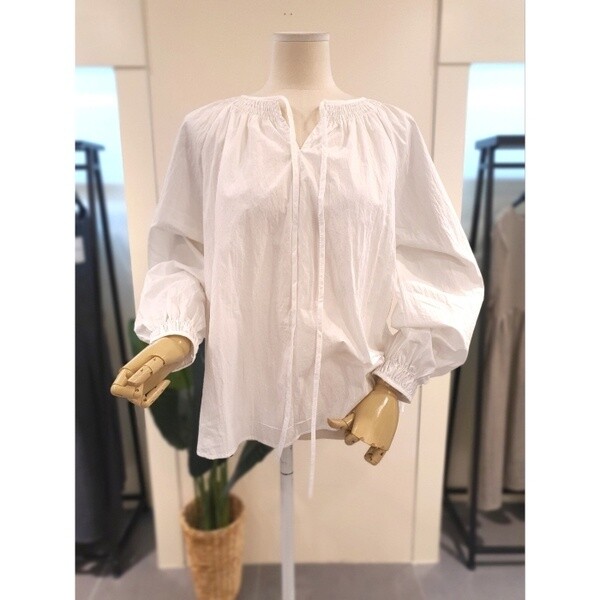 KEBLP903WH_라운드 스트랩 긴팔 블라우스 화이트