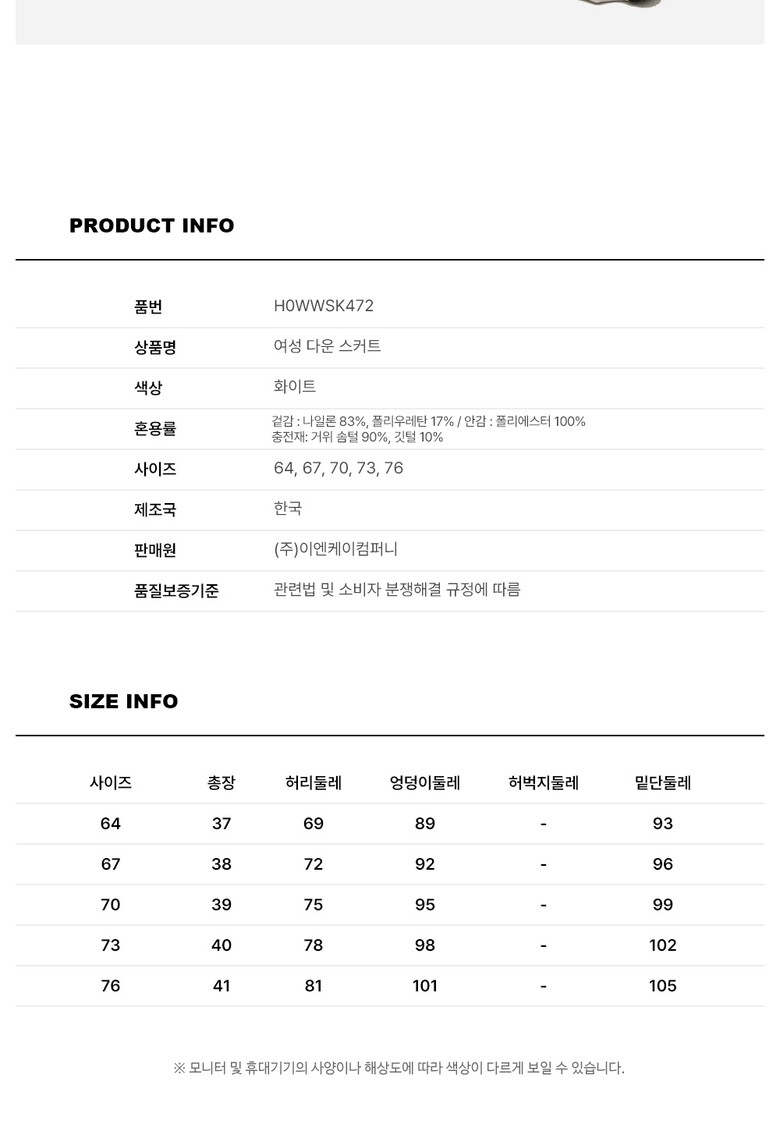 헬베스코 여성 슬림핏 구스다운 패딩 스커트 HOWWSK472