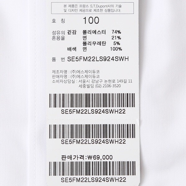 제품소재 : 폴리에스터74%면21%폴리우레탄5%