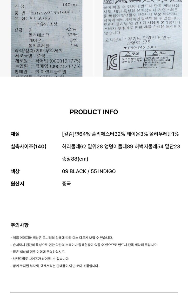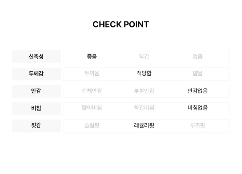 제품소재 : [겉감]면58% 폴리에스터38% 레이온3% 폴리우레탄1%