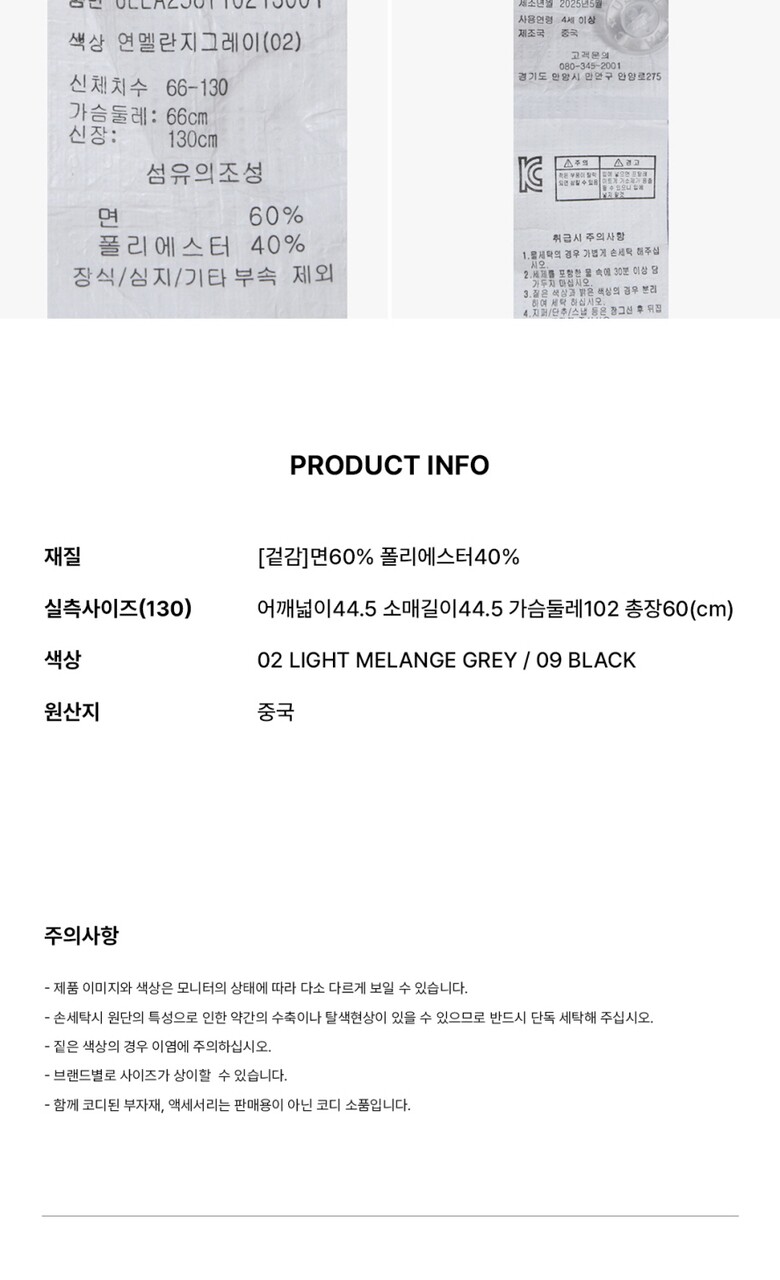 색상 : 02 LIGHT MELANGE GREY / 09 BLACK