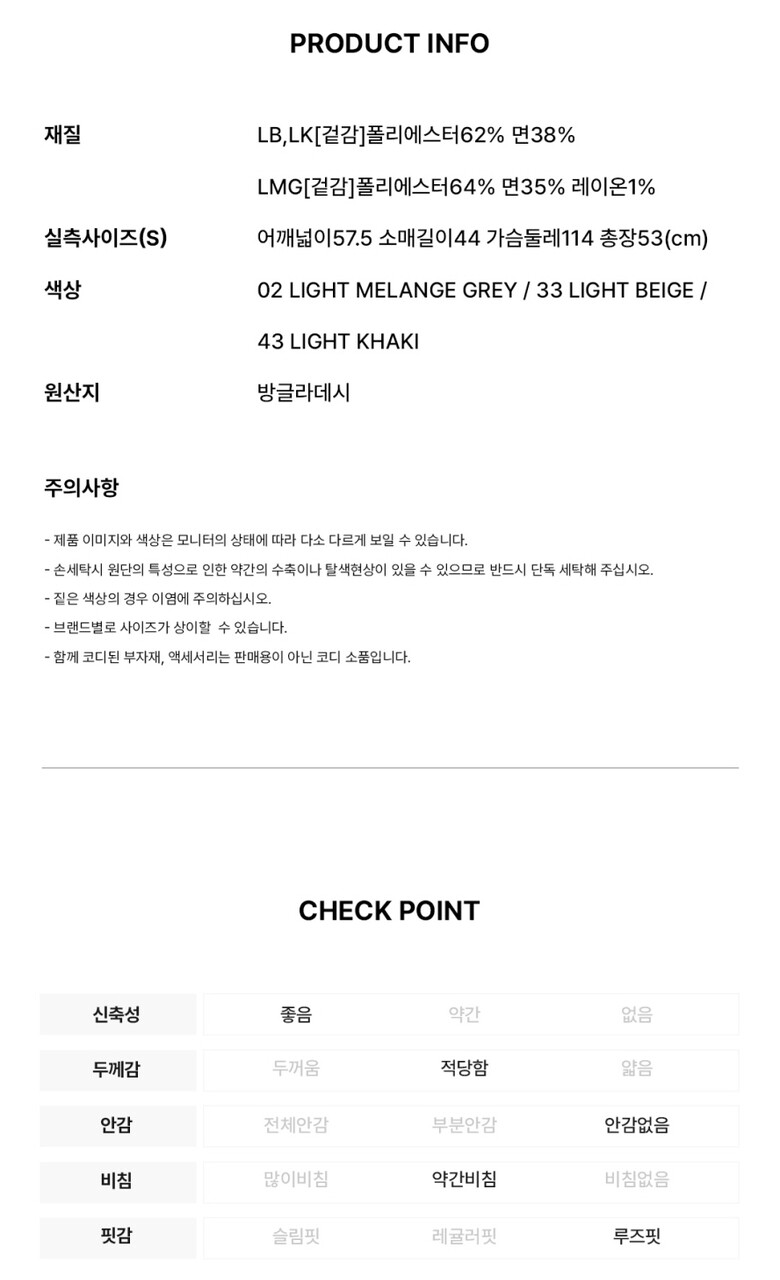 색상 : 02 LIGHT MELANGE GREY / 33 LIGHT BEIGE / 43 LIGHT KHAKI