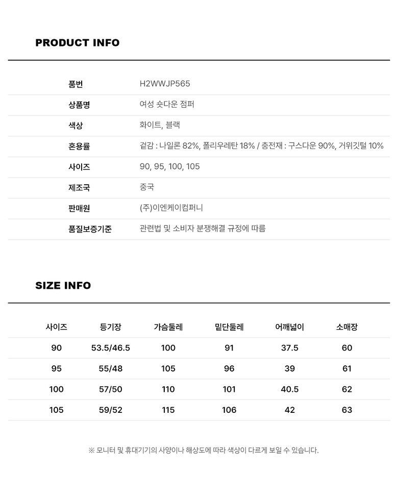 1. 제품 소재 (섬유의 조성 또는 혼용률을 백분율로 표시, 기능성인 경우 성적서 또는 허가서) | 상품 이미지 참조 |